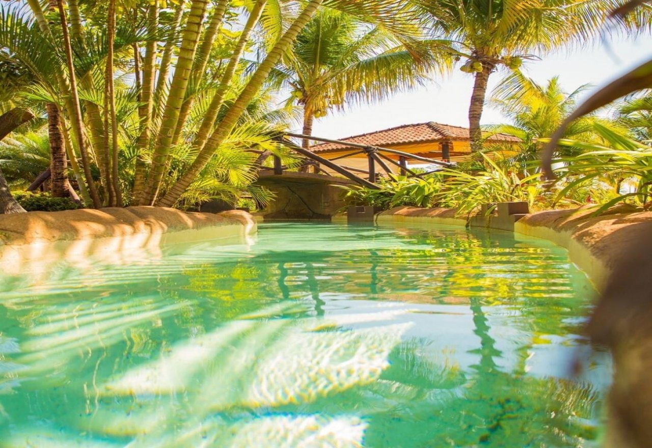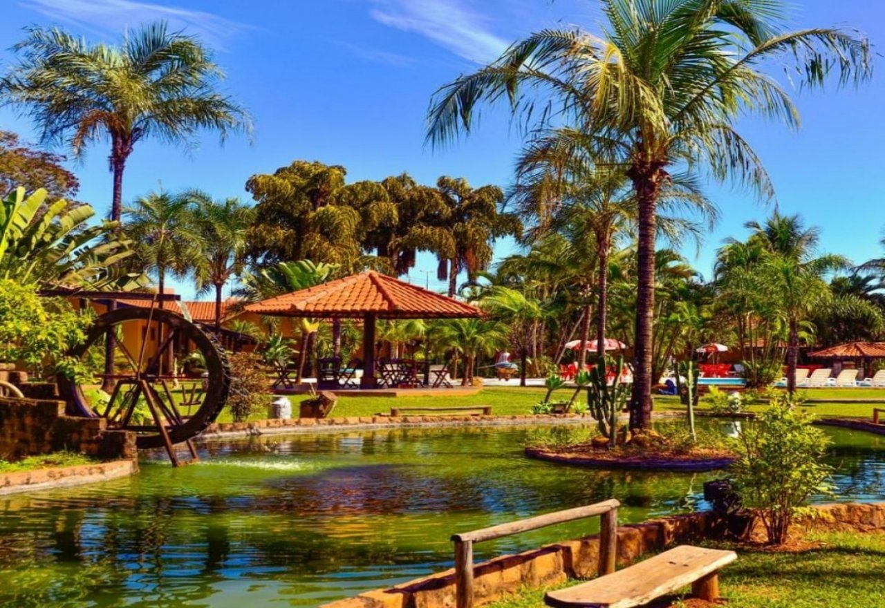 Parque aquático de águas termais com tematização country